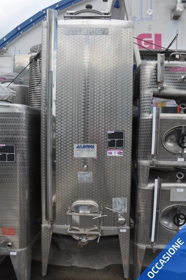 Piedi fissi h. 500 mm, n. 2 valvole 50 Garolla (scarico totale su porta), porta rettangolare verticale, indicatore di livello aperto, preleva campioni, poggiascala, targa identificazione inox.