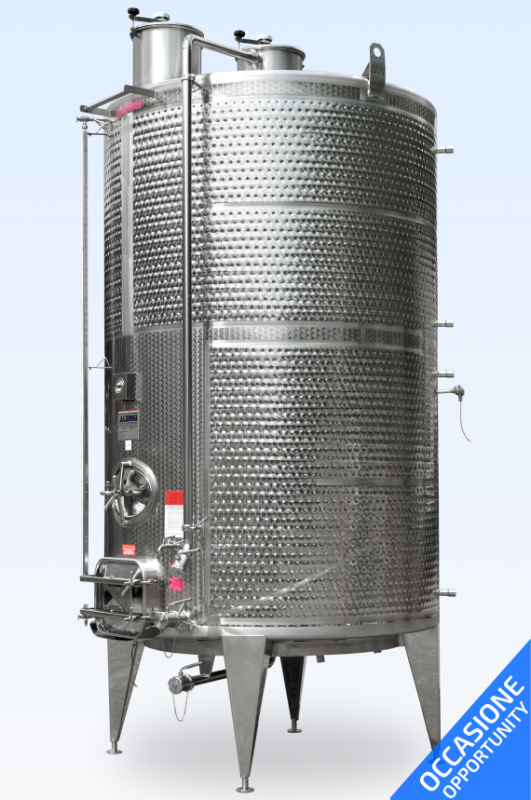 Piedi regolabili h. 750+100 mm, chiusino centrale Ø 400 mm, chiusino frontale Ø 400 mm, n. 2 intercapedini di refrigerazione con manicotti 1"1/4, n. 1 intercapedine posta sul fondo, portella rettangolare orizzontale 410x530 mm a scivolo, porta ellittica 330x440 mm, porta tonda Ø 300 mm posta nella parte posteriore, indicatore di livello chiuso, termometro alcool, tubo di rimontaggio DN 50 con valvola, n° 2 valvole DN 50, portasonda, poggiascala, preleva campioni, etichetta inox, ganci di sollevamento, prolungamento accessori per isolamento, griglia di criomacerazione inclinata a 45°.