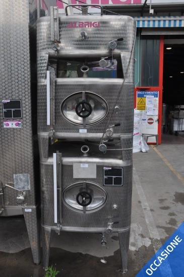 Piedi fissi h. 500 mm, composto di tre comparti da 10 HL, 7 HL e 5,5 HL. Ogni scomparto, indipendente, è dotato di scarico parziale, scarico totale, asta di livello e preleva campioni. I due scomparti centrale e inferiore sono dotati anche di porta ovale.