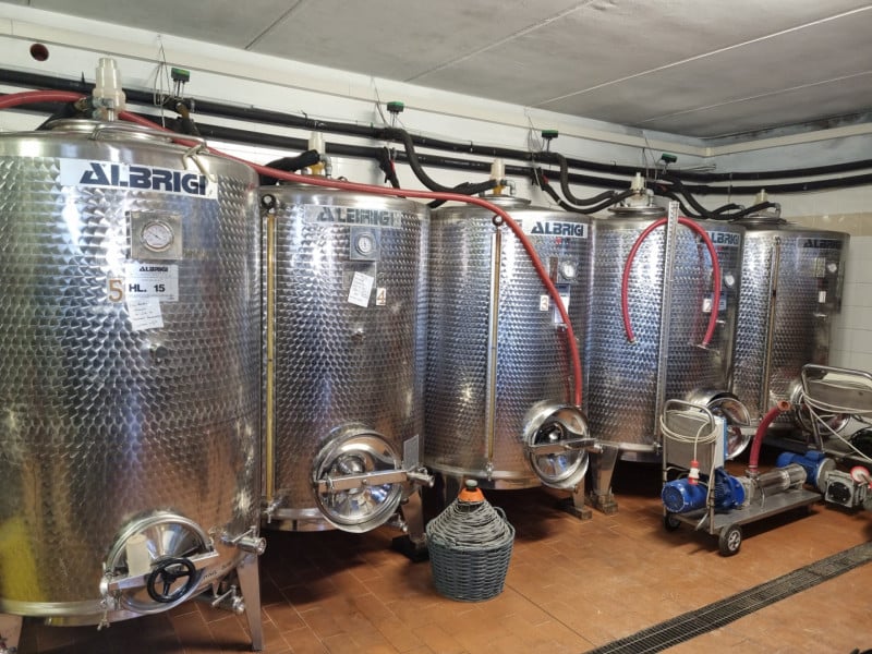 Serbatoi di stoccaggio e fermentazione a fondo conico.