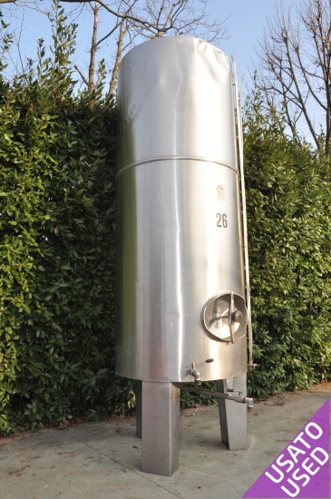 Serbatoi in acciaio inox per olio d'oliva, dotati di n.2 valvole (scarico parziale e totale), livello aperto e porta ovale.